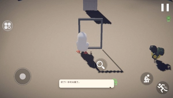 5、正式进入游戏后,左侧轮盘可用于操控方向,右侧按钮则包含蹲下、疾跑等功能。