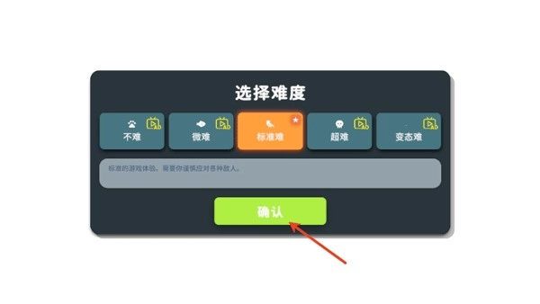 3、完成上述操作后返回主页,点击“新游戏”选项进入游戏界面,选择游戏难度为“标准难”并点击确认按钮。