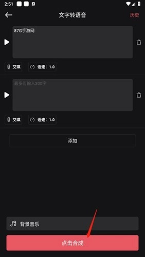 2、在文本框内输入文字,点击“点击合成”选项即可。