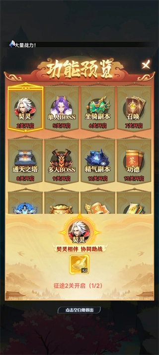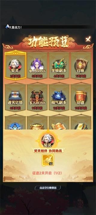 功能预览:按关卡进度开启功能。