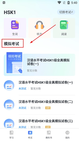 e学中文平台拥有上百套线上全真模拟考卷,这些考卷是与行业内资深出题专家合作打造的。通过这些全真模拟试题,能帮助你提前模拟真实的HSK考试场景,让你了解并熟悉HSK考试的流程和题型,从而在正式考试时更加从容应对、得心应手。