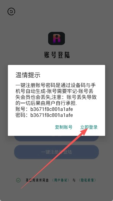 3、在登录页面里点击“一键注册并登录”按钮即可启动登录流程。