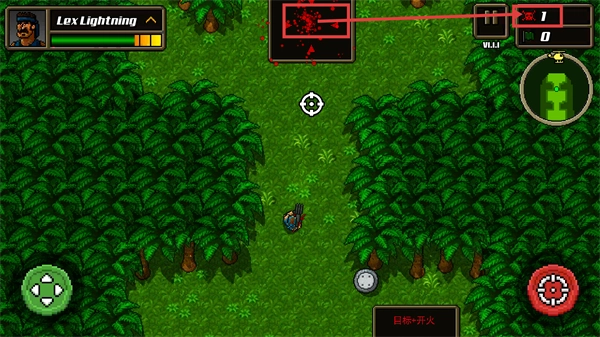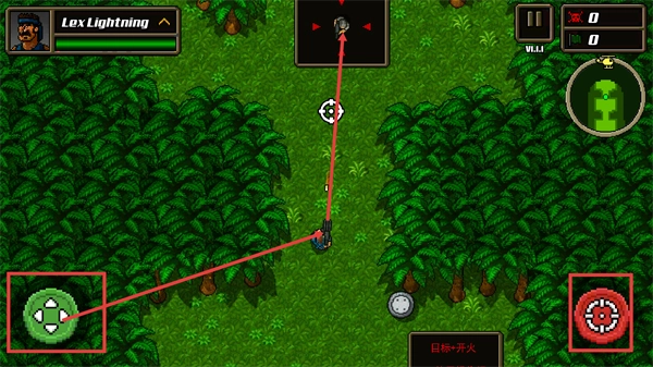 操控【LexLightning】角色时,可借助左下方的方向键进行移动,在瞄准目标之后,利用右侧的按键来完成【目标开火】操作。