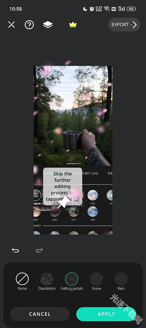 一张照片可添加多达10种不同的效果、过滤器或动画片段。