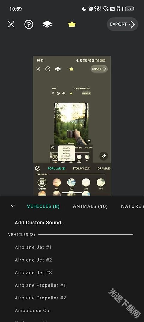点击右下角第一个按钮,就可以进入到效果添加页面;