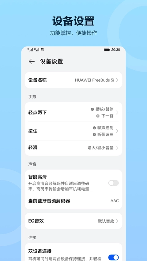 可便捷切换耳机的降噪、音效、操控手势等,满足个性化使用需求。