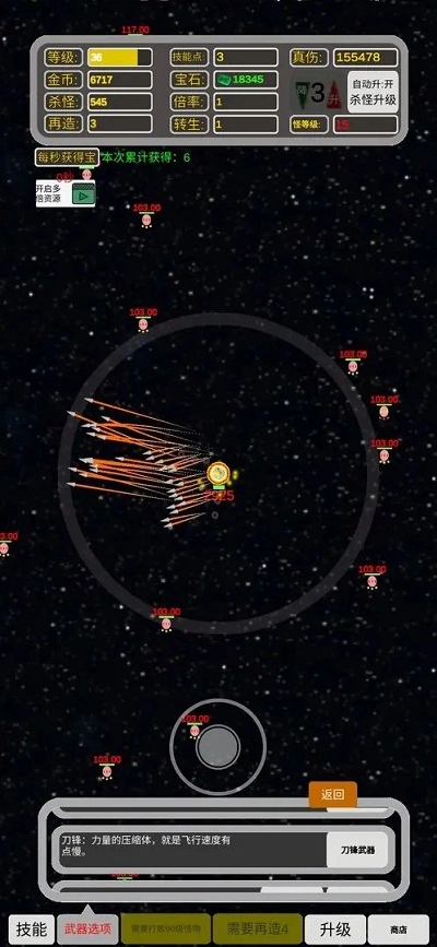 积累战斗资源能增强飞船属性与武器性能,结合“一键转生60次”这类快速重置机制,可助力你战力实现飞跃。