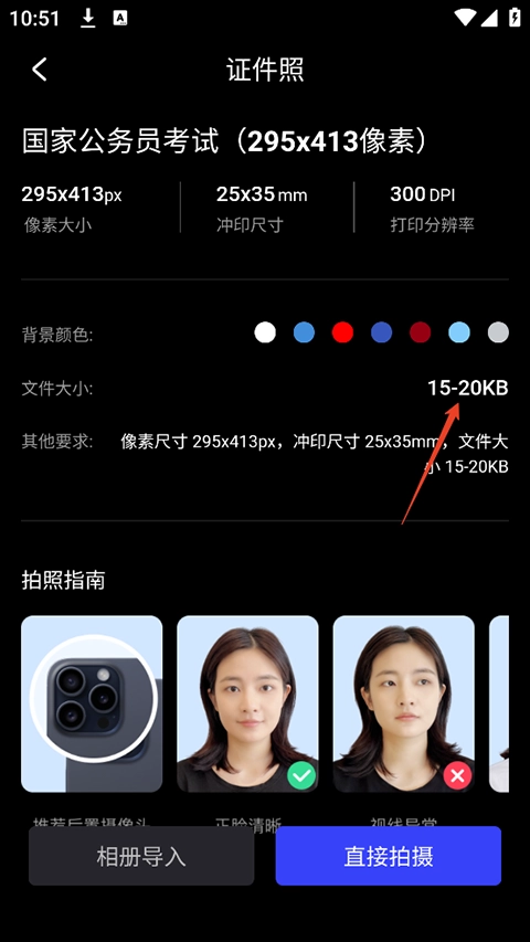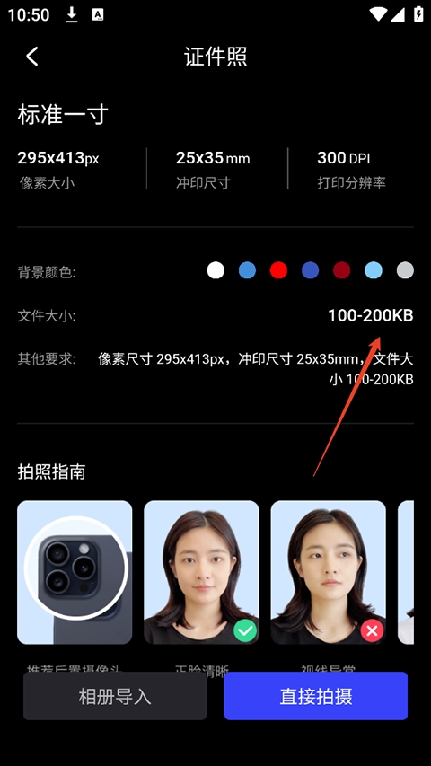 照片大小可以通过换照片类型来进行调整的,比如一寸大小的寸照照片大小最多200kb