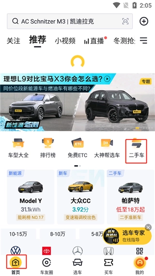 1、点击进入首页,选择二手车;