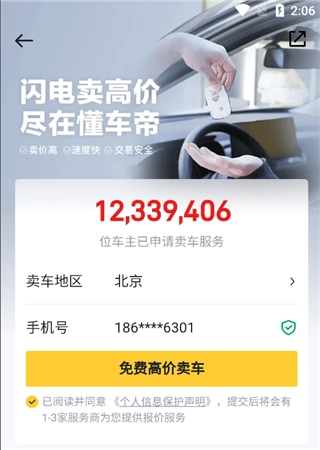 2、点击高价卖车;
