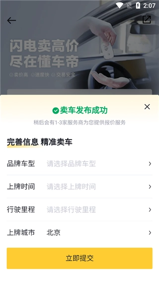 4、输入爱车的详细信息,点击立即提交即可。