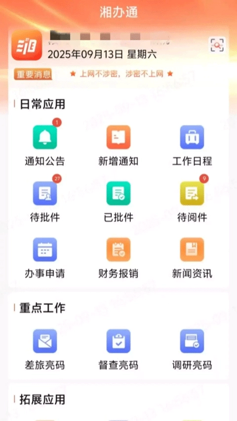 湘办通手机版是一款聚焦党政智慧办公的应用,它不仅整合了省、市、县、乡、村五级政务服务体系,覆盖全省各级政府部门,达成“一网集成、一端通办”,破除传统办公存在的信息孤岛与流程壁垒;还包含工作日程、待批件、办事申请、财务报销、新闻资讯、差旅亮码等一体化办公功能,便于用户日常办公操作;同时能将工作中的通知公告实时推送给用户,让用户第一时间了解最新工作公告动态,助力用户实现更高效、更及时的工作成效。