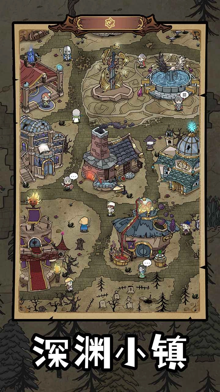 深渊小镇:这片废墟之上的小镇,能够建造各类设备,为勇者们提供日常所需的资源以及成长养成的途径。