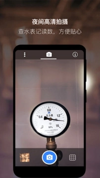 夜间进行高清摄影来查看水表读数时,LED闪光灯能稳定辅助拍摄,让你不再担心周围环境光线不足的问题。