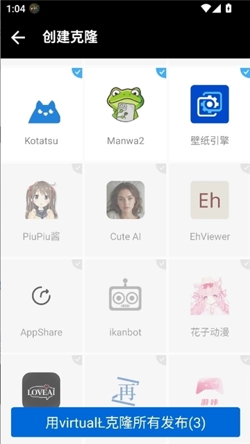 3、分身创建过程非常简单,通常只需在列表中选择应用。