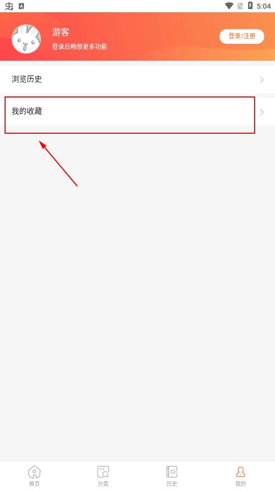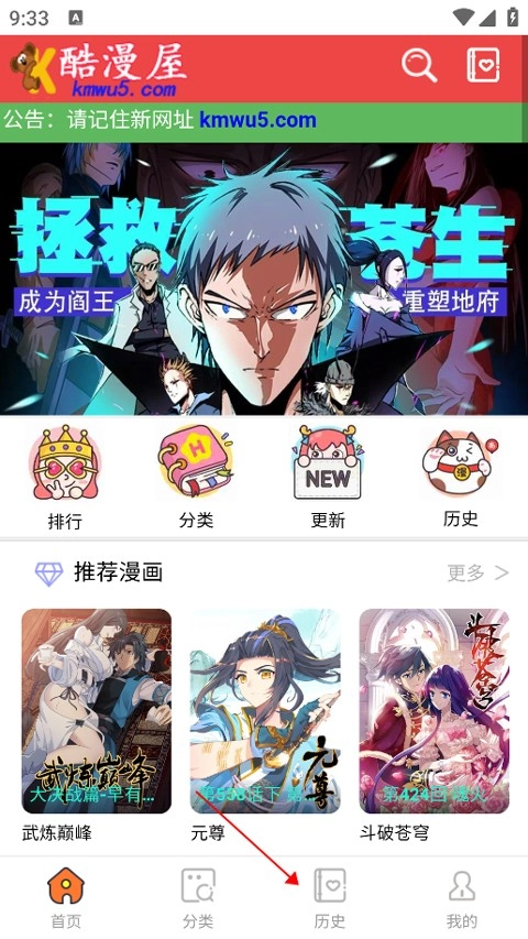 进入酷漫屋后,点击历史选项