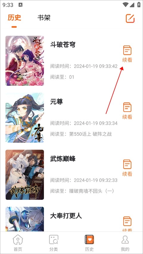 最后就能成功接着上次没看完的章节啦!