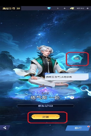 第三步:点击突破练气。