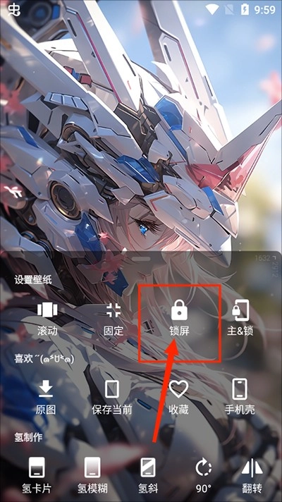 2、进入对应页面后,点击壁纸会弹出菜单,此时点击锁屏键就可以了