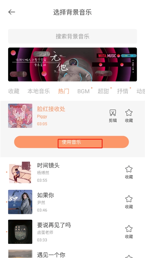 4、如果想要在视频里面加音乐的话,点击右边添加音乐功能;