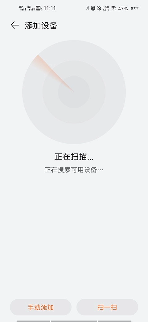 蓝牙开启后,软件会自动跳转至添加设备界面,您可以选择手动添加设备,也可以通过扫码的方式进行添加。