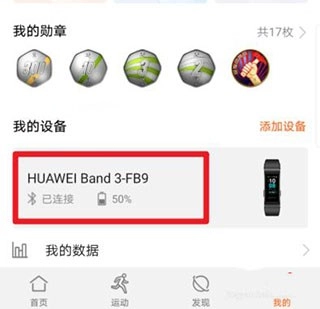 点击进入后,在“我的设备”里,我们选择华为手环3设备并进入其后台管理界面。
