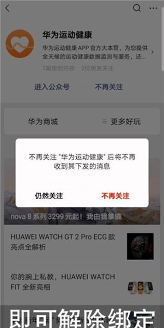 首先打开【微信】客户端,接着搜索“华为运动健康”公众号,随后取消关注该公众号,就能解除绑定。