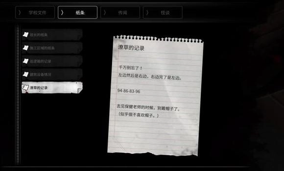 12、接着前往「体育仓库」,一进门就能拿到「潦草的记录(文件)」,上面的年份是随机出现的,需要记住其顺序。
