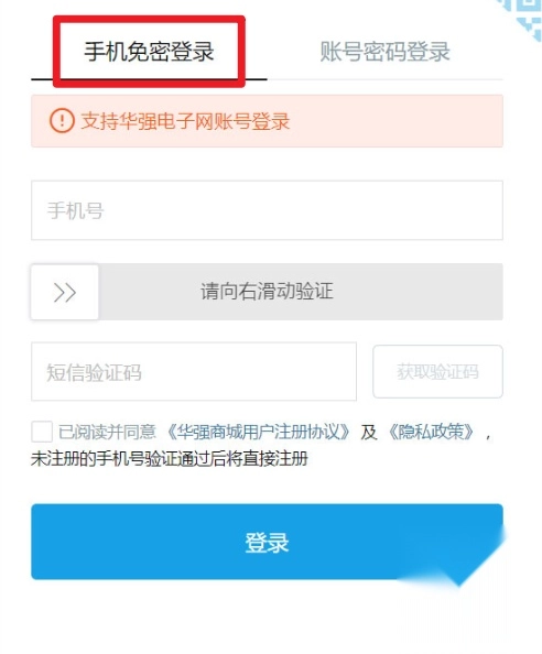 点击右上角的二维码图标,扫描该二维码并关注华强北商城,就能便捷完成登录操作。