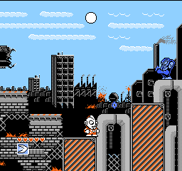 这里有敌人埋伏,敌人从屏幕中刚一现身就立即对超人射击,一般来说连续两发子弹,注意躲避。
