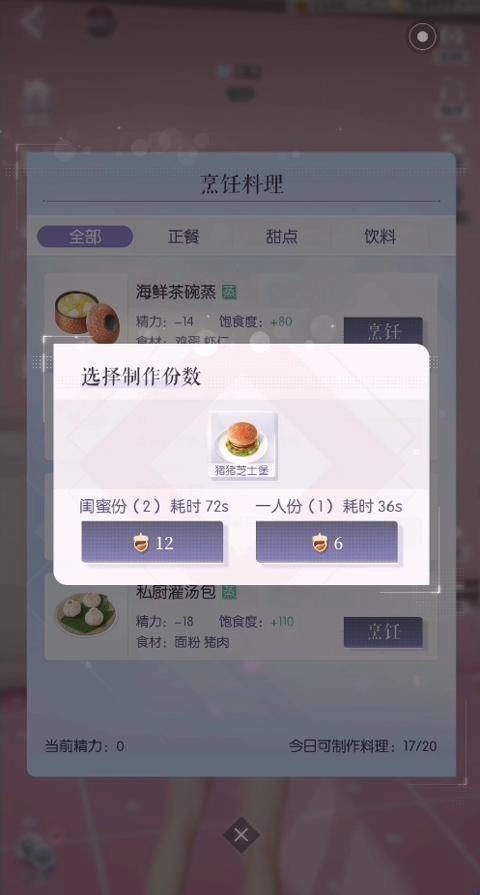 2、然后点击左上角”饿扁了“,选择要烹饪的料理;