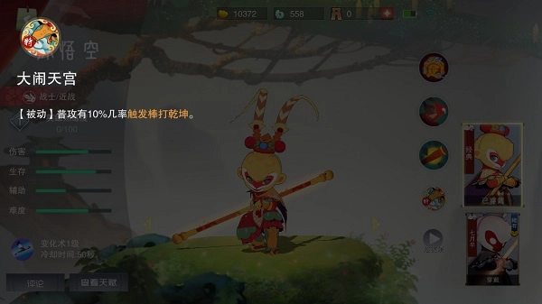 1、被动 大闹天宫 普攻有10%几率触发棒打乾坤。