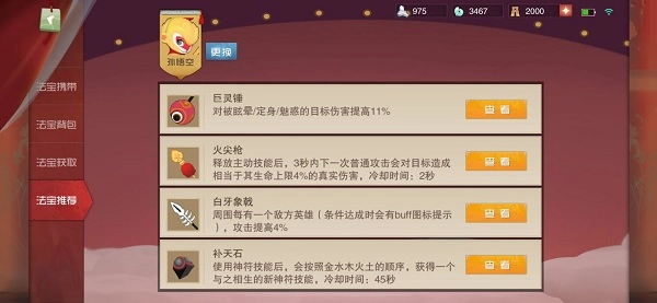 1、推荐配装:巨灵锤+火尖枪+白牙象戟+补天石