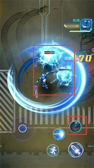 2、操作【陈锋】这个角色,通过底部的虚拟按键能够实现移动,同时要准备好释放技能来发动攻击。