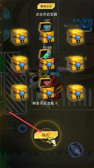 4、战斗后开启宝箱获取奖励,领完奖励点击【确定】,即可结束本次宝箱开启流程。