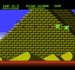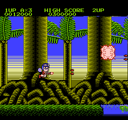 第三关的boss。这个boss很强大!小怪可以消灭,但是那些花粉攻击就消不了的,只能躲避,而且数量不少,堪比那个时代FC的弹幕了。突然间来一个难度很大的boss,当年有玩这款游戏的玩家很多就卡在这处。