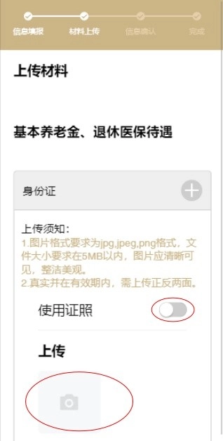 1.信息填报完成后,点击“下一步”按钮,进入“材料上传”页面。