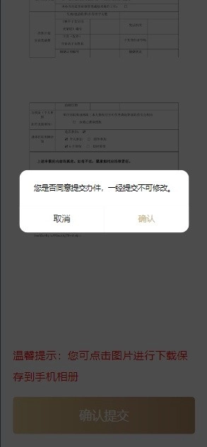 点击“签名完成”后,进入确认相关信息页面,点击“确认提交”。