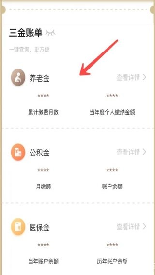 2、您可以查询到养老金、公积金以及医保金;