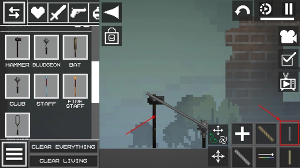 2、进入游戏后,界面如示意图所示,点击左上角的菜单按钮,在地面上添加两个物品;