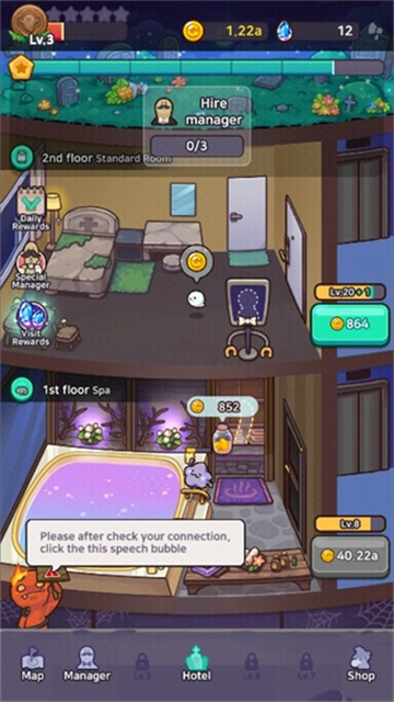 《幽灵酒店》是一款模拟经营类游戏。在游戏里,玩家将以酒店经营者的身份,规划独特的商业模式,研发多样食谱以适配不同顾客的口味偏好,策划各类娱乐活动增添酒店吸引力,完成一系列趣味挑战积累经营经验,逐步打造出专属的高端酒店。游戏内配备了丰富多样的道具,每种道具都具备独特的功能与用途,玩家可借助这些道具全方位满足客人的各类需求。随着酒店经营状况日益向好,玩家还能解锁酒店升级功能,进一步提升酒店的规模与品质。