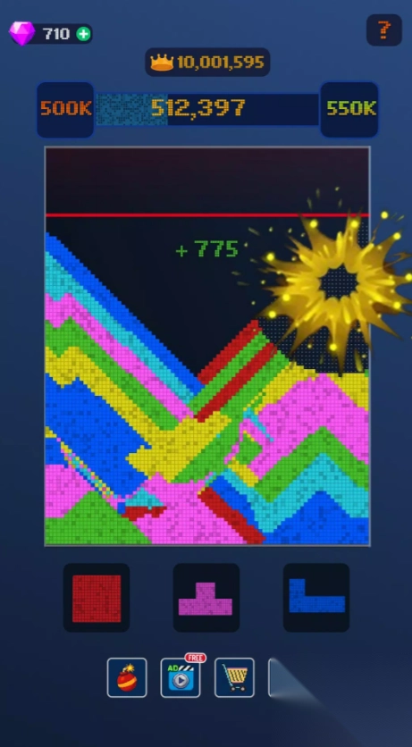 2. 只需通过移动、旋转沙块,让同色沙粒堆积形成完整的水平线,就能实现消除并得分。