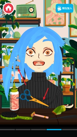 2、选定角色后,直接拿起剪刀,咔嚓一下把头发剪短,随你选择!