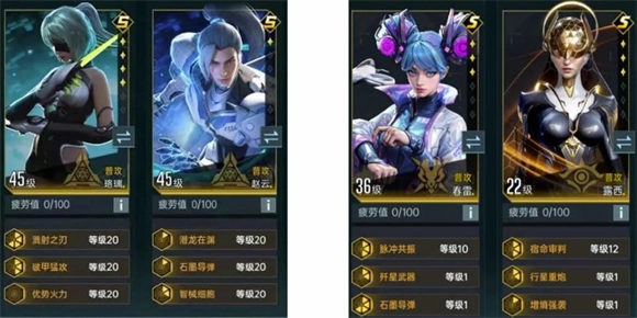 3、普攻队:珞璃+赵云、春雷+露西。强化自身普通攻击属性,同时通过技能、模组、城建来提升命中(属性),做到每次输出都能造成海量伤害。