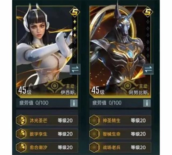 5、主动队:伊西斯+阿努比斯。主动队多以恢复耐久(治疗)为主。使用主动英雄组建治疗部队,可有效减缓备用军械的消耗,前线对战续航也更加持久。