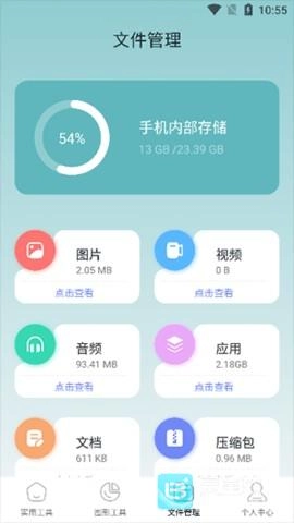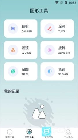 打开软件可看到许多实用工具,点击需要的工具即可开始使用,软件还设有多种图形工具供用户使用,且能够快速对手机内的各种文件进行管理。