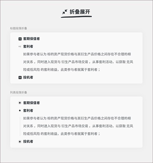 针对标题、列表段落,你可以点击段落前面的,将该段落折叠。需要看详细的内容时再展开。