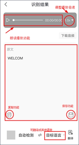 识别结束后,您可以播放翻译后的内容,还能自行选择播放速度;原文内容也能轻松复制与保存。