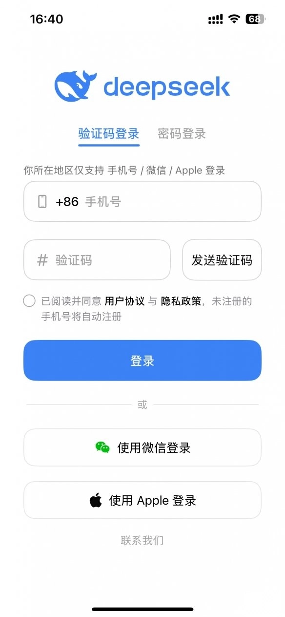 输入之前设定好的手机号码与密码,接着点击“登录”按钮,就能进入DeepSeek应用的内部界面了。
