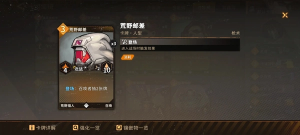 - 召唤卡:能够召唤生物或装置投入作战,依据效果的差异,还可提供一定的增益。